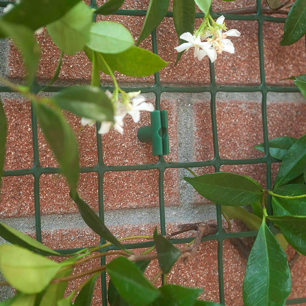 Speciella clips för att fästa Tenax Corolla spaljénät på vägg.
